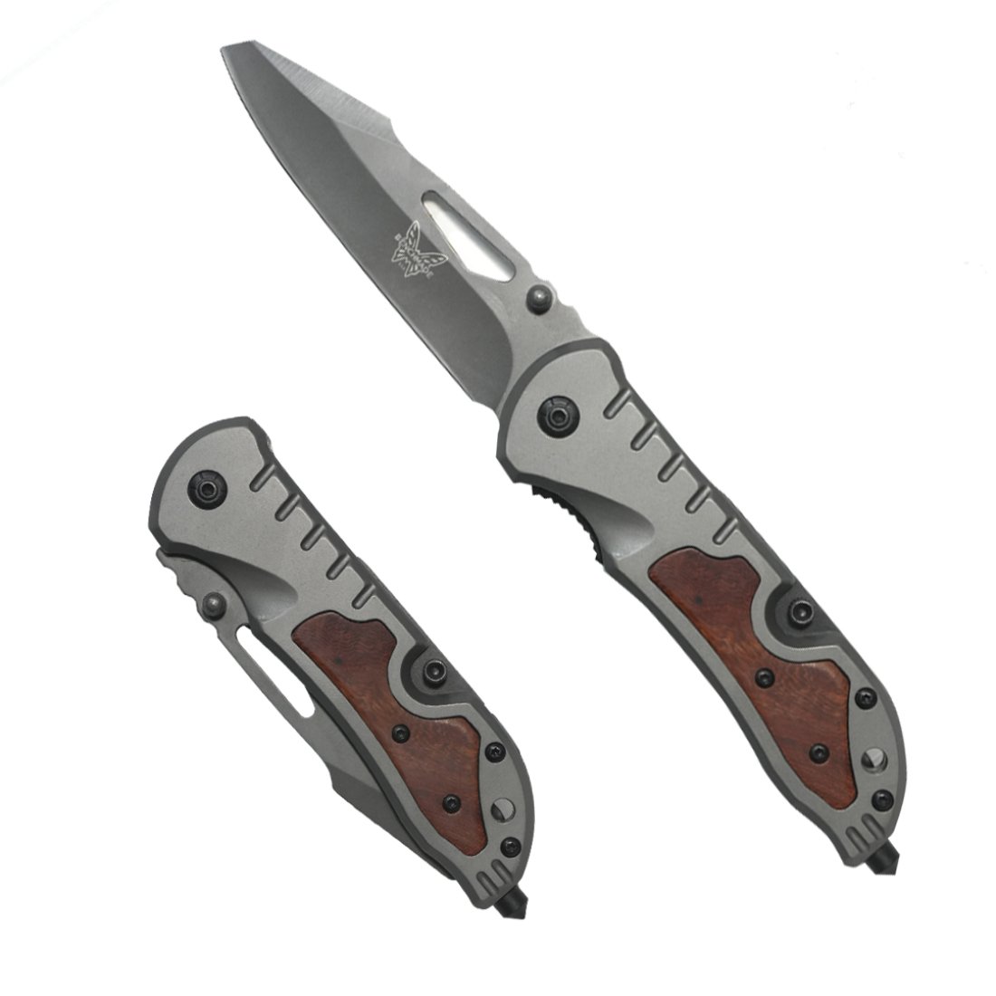 NAVAJA TACTICA DE RESCATE, HOJA DE 12CM. HOJA CORTA CORDON MOVIBLE, MANGO CONTEXTURA DE MADERA IMPORTADO