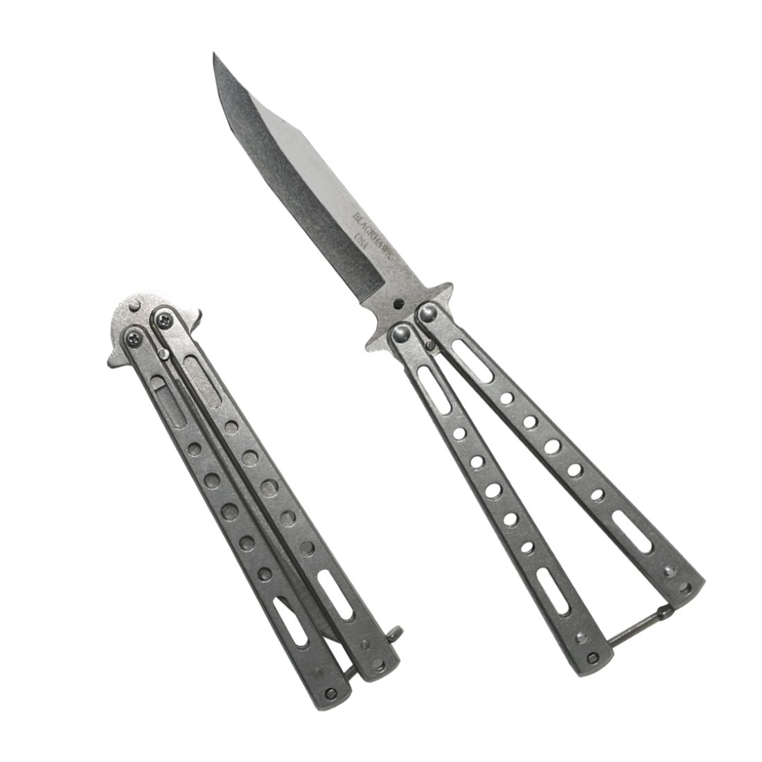 BALISONG DE PRACTICA TIPO PEINETA, HOJA DE 12 CM-MANGO DE 13 CM, ACERO D2. IMPORTADO