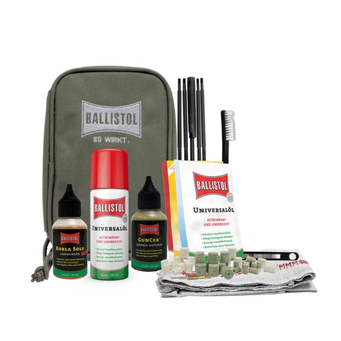 BOLSA DE LIMPIEZA DE ARMAS, 44 PIEZAS COLOR VERDE BALLISTOL