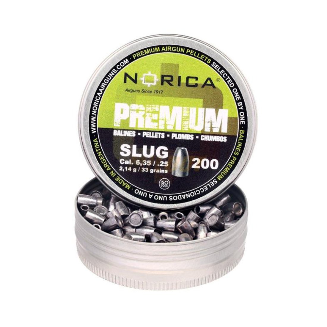 LATA DE BALINES MARCA NORICA MODELO SLUG CALIBRE 6.35 (.25) NORICA